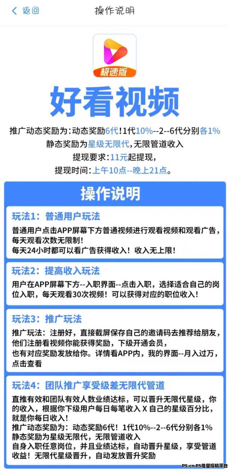 用户在app屏幕下方--入职界面--点击入职,选择适合自己的岗位入职,每天观看30次视频,额可以获得对应职位收入。