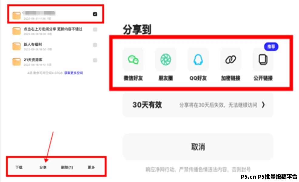 Tip:把部分资源打包成压缩包,上传到自己的夸克网盘内再分享,可以提高用户转化率。