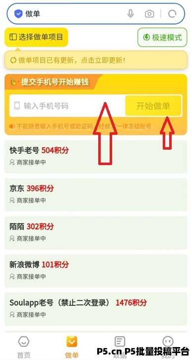 输入手机号,点击开始做单,手机收到验证码、上传验证码到对应的项目,最后提交,然后等待商家确认,佣金到账,步骤很简单,所以大大提高了推手的操作速度,不管是新手老手都能有不错的收入,商场周围,老年人活动中心周围等,都是适合的地推地点,因为老年机基本什么软件都没注册过,所以可以获得单号最高收益。