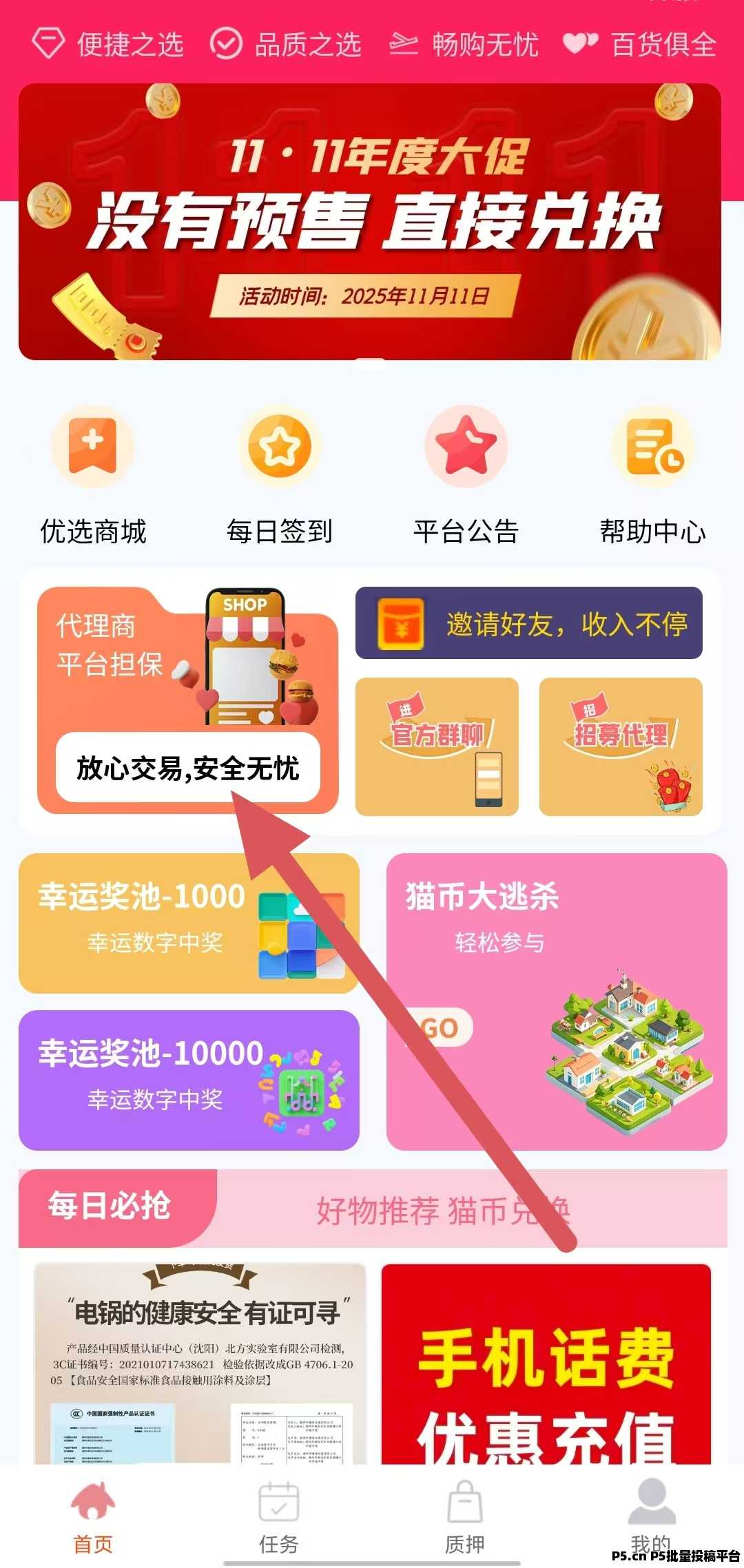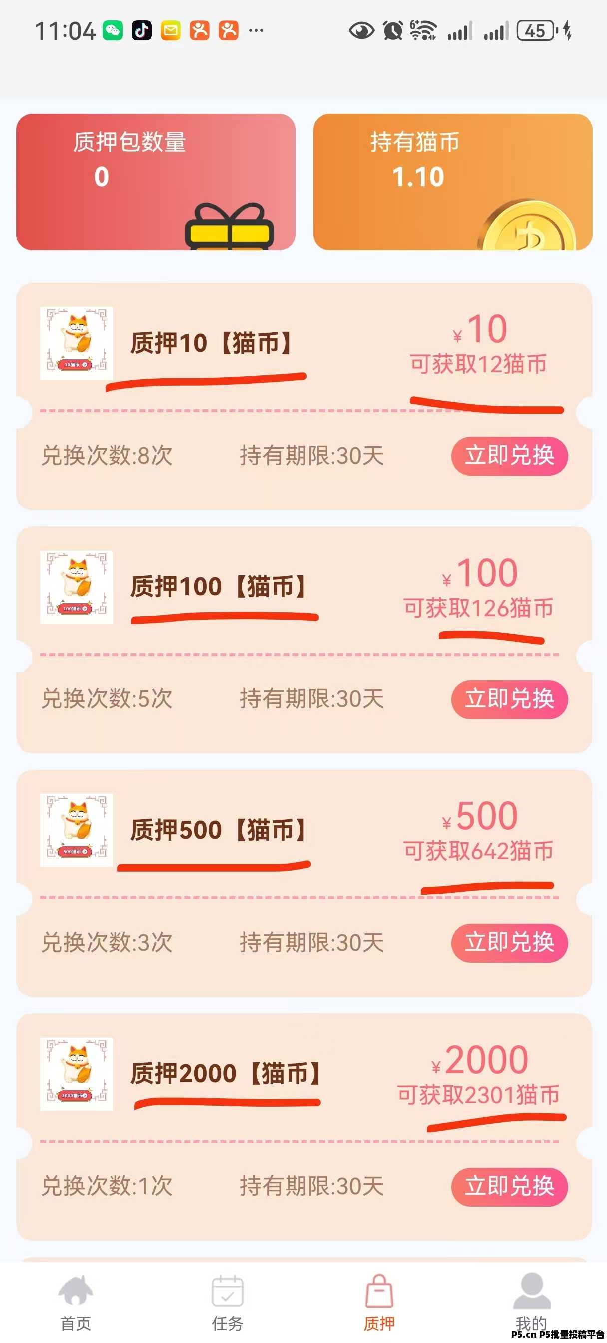 任务每天获得1个,最少5.5个互转,市场无限收猫b