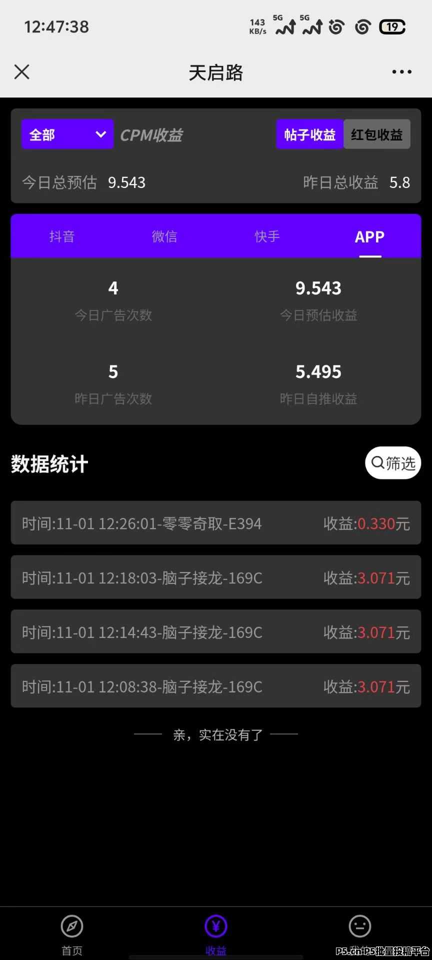 天启路,零撸每日享受广告收益,固定每日收益高 不一样0003345 2025-11-03 20:06:37 1174 浏览帖子广告内容赚米!单条广告最高4.7元无需任何费用单人日赚50到100+微信扫码加入不懂玩法进群
