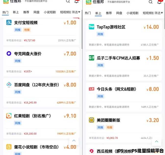 任推邦邀请码,任推邦不扣量的应用拉新平台,任推邦是一个超大型的应用拉新平台,覆盖了各大应用拉新,大平台推广起来无压力,佣金结算非常稳定,上线的项目都是官签项目。