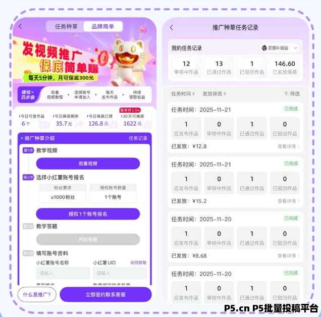 不用自己找品牌、谈合作,平台帮你对接优质资源,任务持续放送,赚品牌推广超简单!