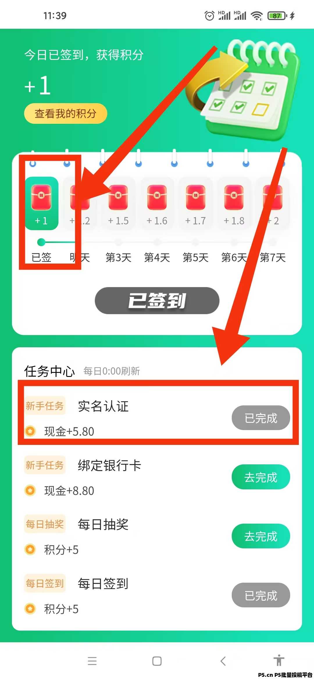 新出项目斯哆伊,注册以后实名认证,简单输入即可,然后签到,满105提现。切记零撸即可。