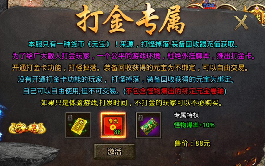 青龙志APP是一款刚出不久的传奇打金平台,此款是最传统的传奇打金平台,此款平台只有一种货币,就是元宝,无论是充值还是打怪掉落的都是元宝,所以说元宝的搬砖点是很高的,此款平台的人气也是相当高的,上线不久就已经开放了450多区,并且平台拥有超高的人气,平台内打出的元宝都可以在世界频道出售,只要开通打金卡,打出的装备和元宝就都可以交易了,是非常不错的。