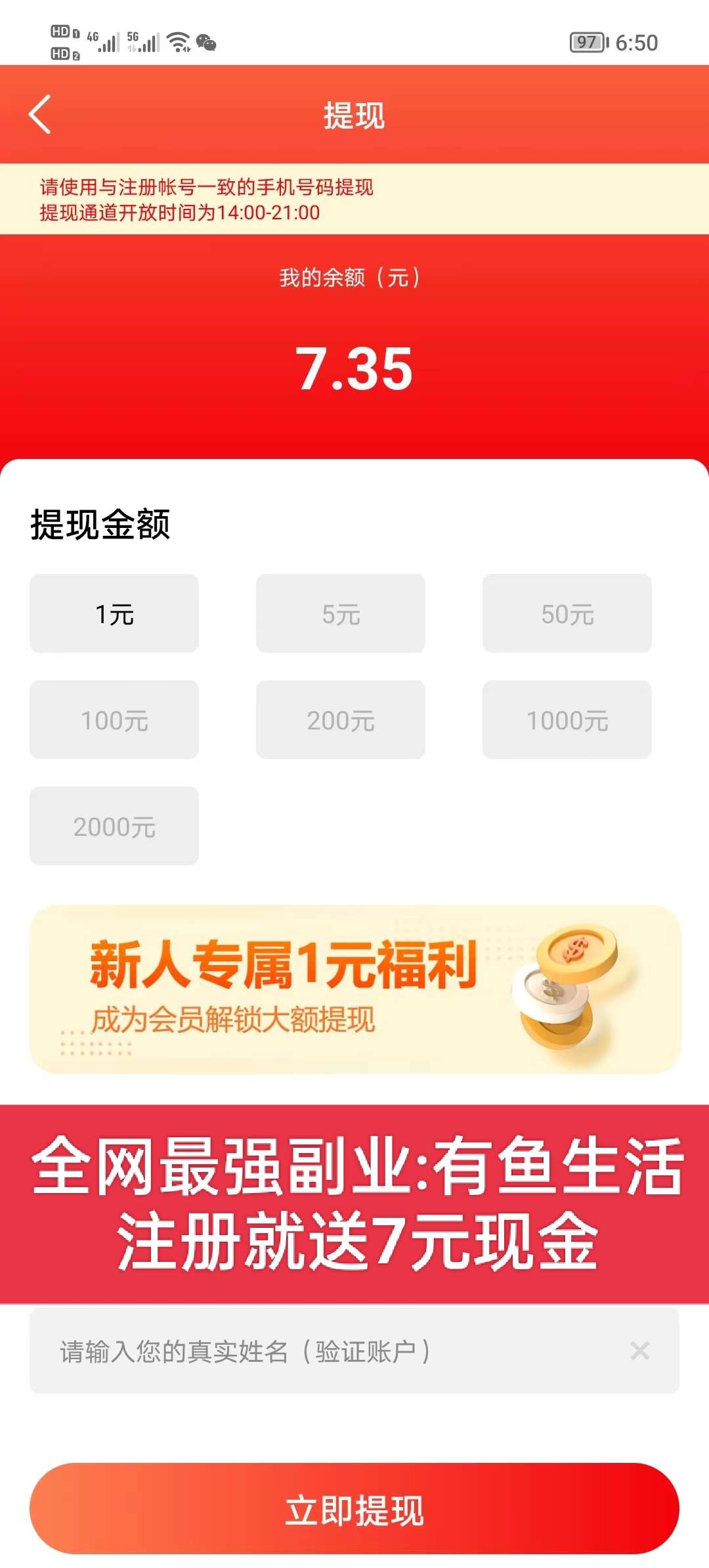 最强副业有鱼生活,注册就领7元 零创优选 2023-07-14 22:03:10 8343 广告联系客服QQ:55826758 【在线投稿】 全网最强副业,注册就送7元现金,扫码免费开启管道收入!交流LCDR2350