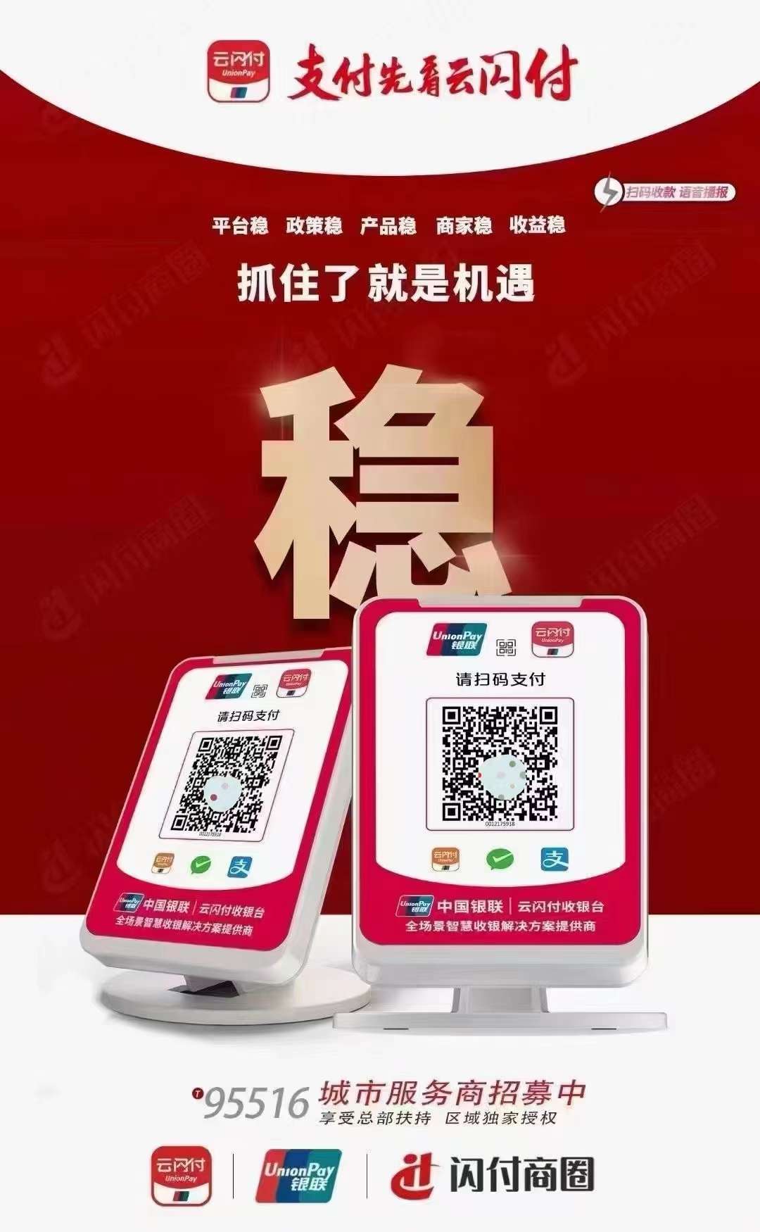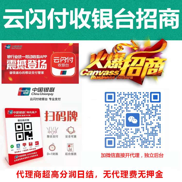 银联云闪付收款码诚邀代理,无代理费无押金,开户达标奖360元每户,超高分润日结!