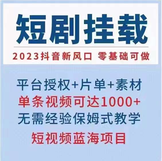 羽坤短剧CPS:2023年副业好项目,提供工具,免费授权渠道