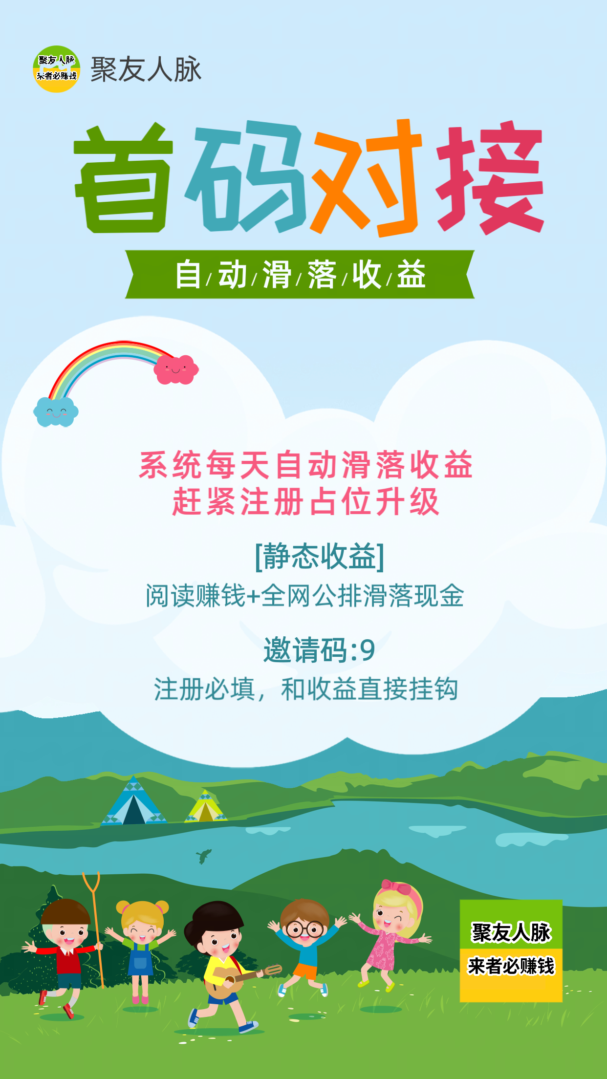 聚友人脉是一款 与 多家知名媒体达成合作的广告引流平台,找项目,发广告,加人脉,赚钱必备神器。阅读赚钱+全网公排滑落现金,您只需注册占位升级,您上级整个团队收益 和 平台90%的收入,系统每天都会自动滑落分给您,日赚200~300元。聚友人脉,是你工作以外的一份副业。