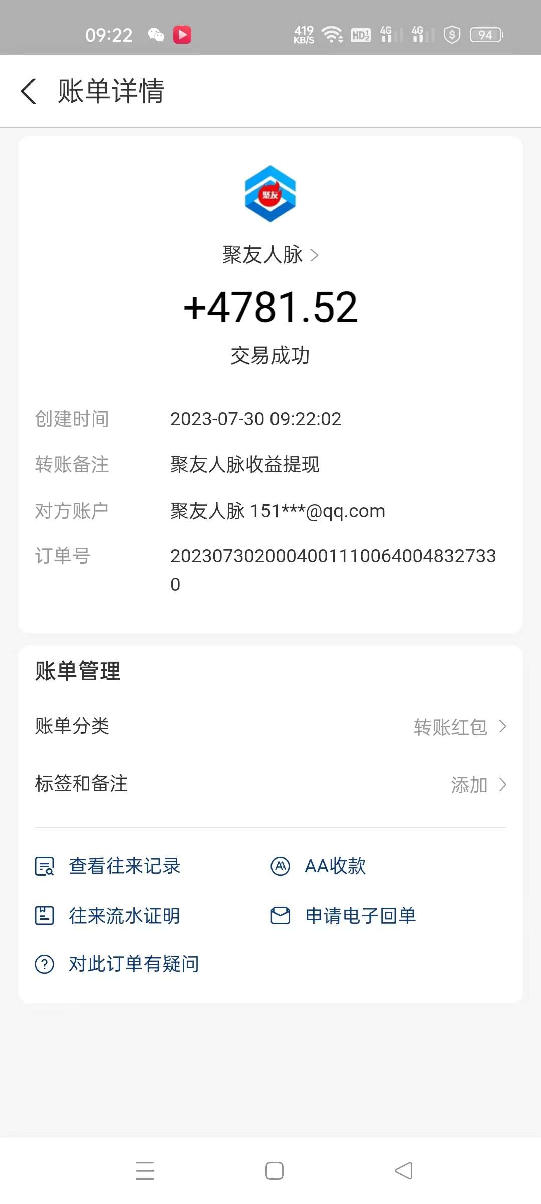 赚了42万+,聚友人脉,全网自动公排,滑落现金人脉系统平台,上帮下助模式,注册占位升级,这点很重要,很重要。聚友人脉上线20天来,已吸引众多平台引流大佬,纷纷加入聚友人脉平台,与聚友人脉共创辉煌,开创未来。