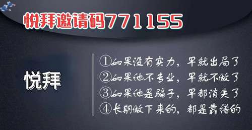 一、悦拜邀请码:771155,欢迎来对接悦拜首 码。