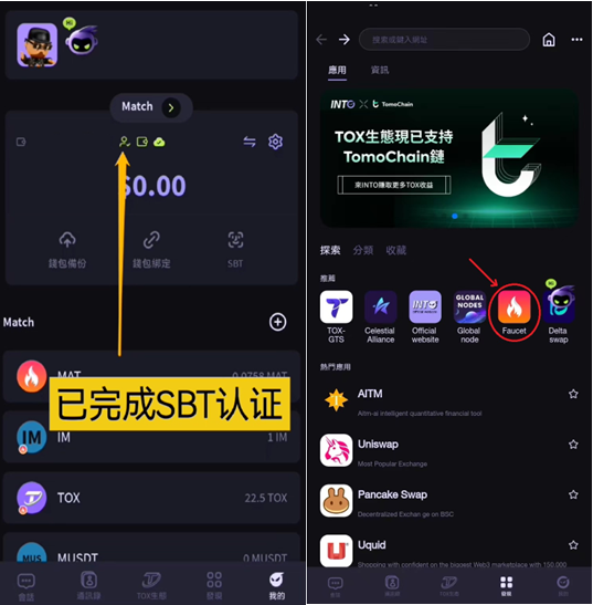 Match链和Tomo链都会用到这个钱包地址,TOMO链首次任务绑定上级邀请人时,需要用到。