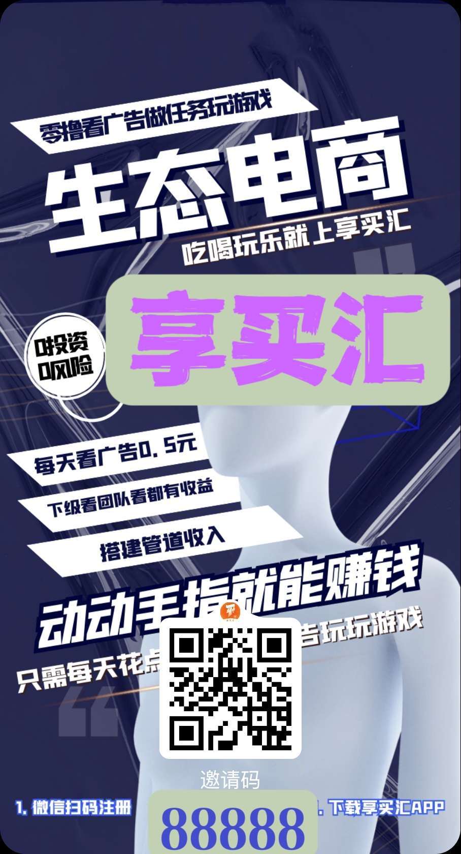 扫描图片二维码,下载注册【享买汇】