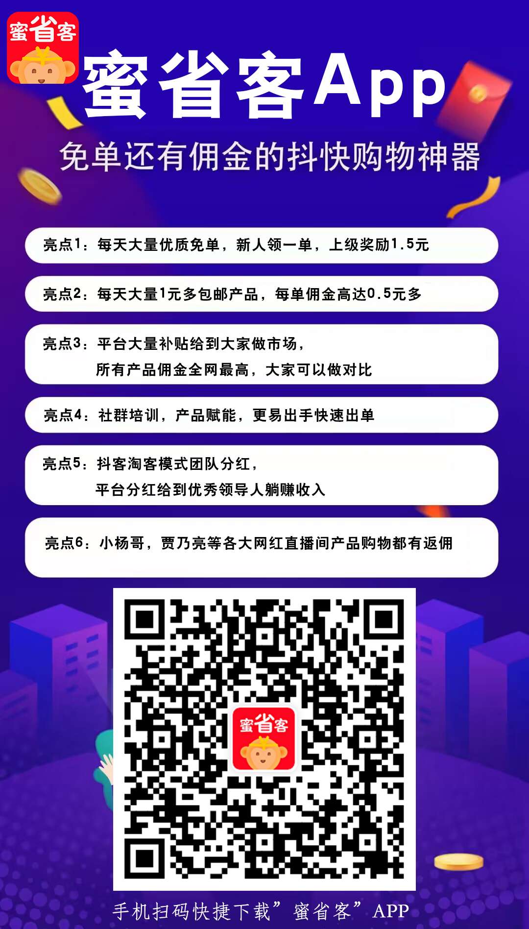 蜜省客APP新模式、新商机 ,撸商品还拿佣金,注册即送最高总裁级别!