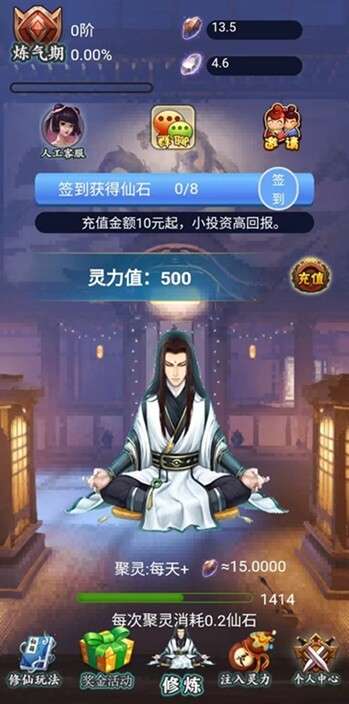 仙途漫漫:聚宝修仙模式,注册送灵力,离线自动得收益