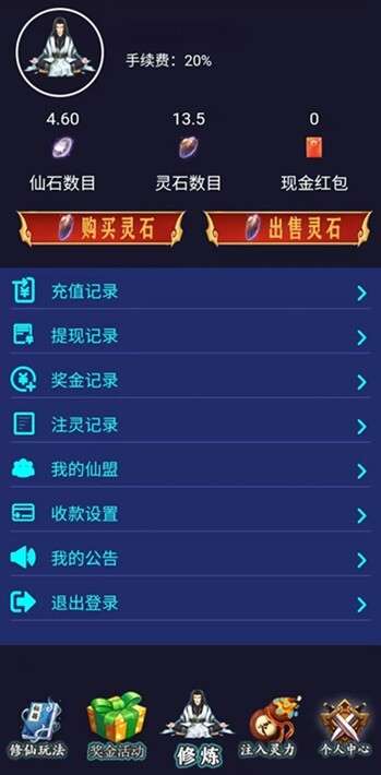 注册就送500灵力值,可直接离线卦机,产出的灵石1个0.1元,1元起可直接个人中心出售灵石处变现,也可在注入灵力处注入灵石得灵力,灵力越多产出越多。