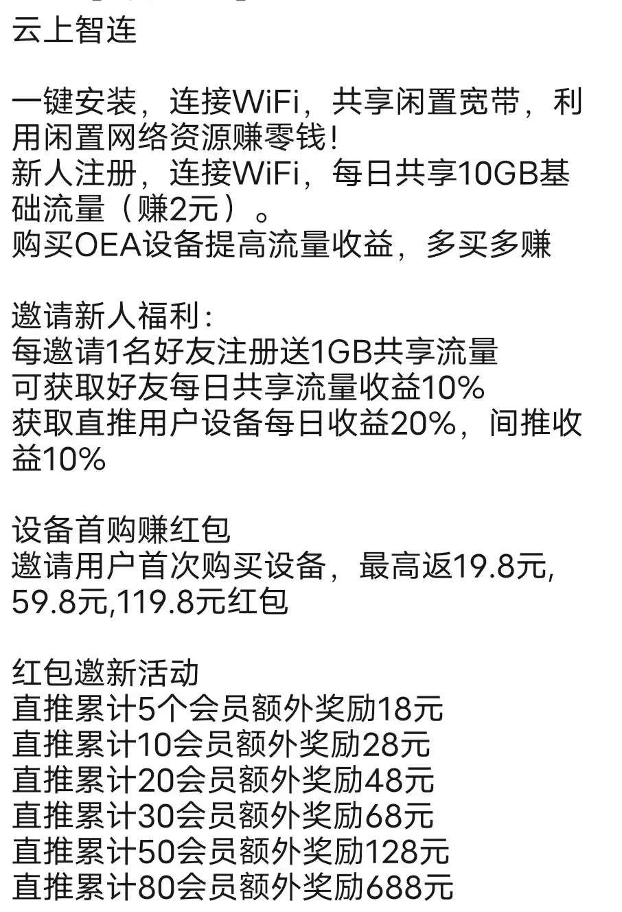 云上智连,首码零撸,微信登录,多微非常的养生 小老鼠 2024-01-13 17:03:14 4168 云_上智连,首码零撸,微信登录,多微非常的养生,每两秒手动领取一次,领取10次完事看下图↓↓↓流量兑换会员才能提现,红包提秒到一键安装,连接WiFi,共享闲置宽带利用闲置网络资源赚零钱!新人注册,连接WiFi,每日共享10GB基础流量(赚2元)。购买OEA设备提高流量收益,多买多赚 标签:云上智连云上智连项目